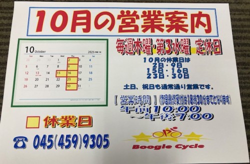 10月 営業案内2025年10年1日9月も爆速で終わり、ようやく秋の気配が見え始めましたね。季節の変わり目、体調を崩しませんようご自愛ください。10月の営業案内です。10月も特に変わらず、毎週木曜日と第3水曜日が定休日となりますので、 ご来店予定のお客さまは、営業日にお気をつけください。10月休業日2日・9日・15日・16日・23日・30日